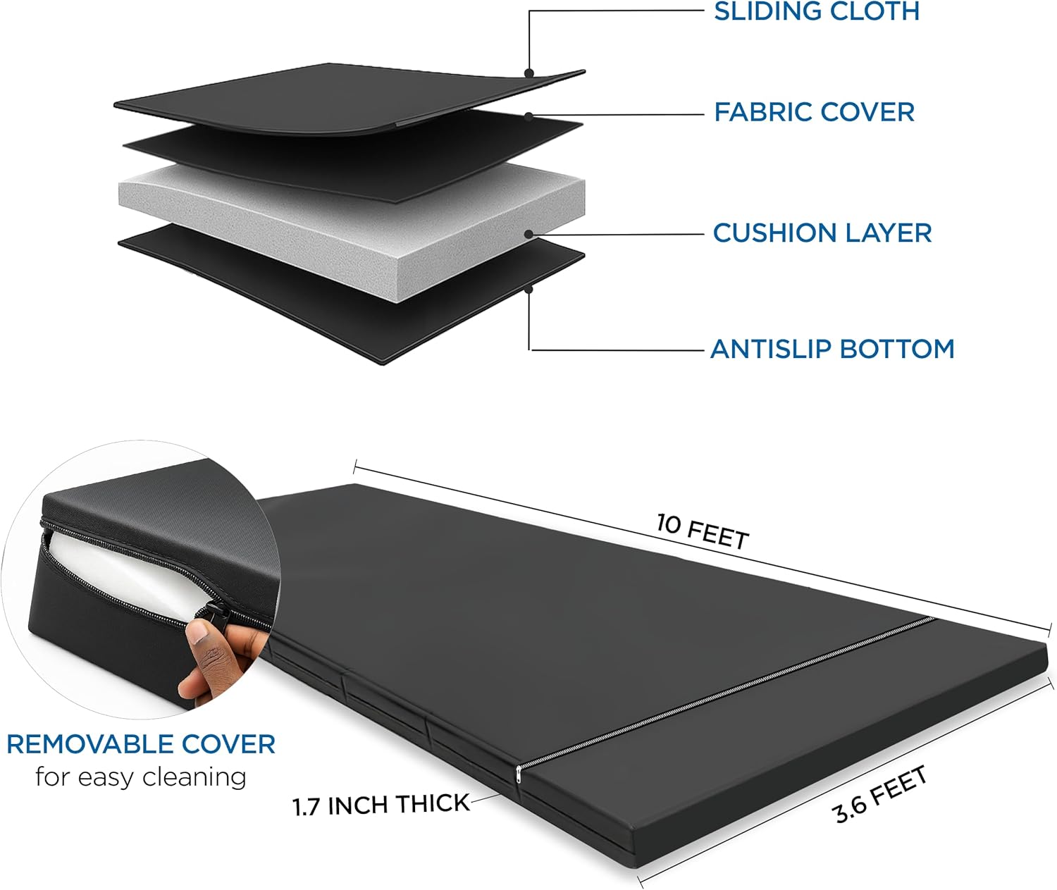 | Item Dimensions L x W x Thickness | 120"L x 43.2"W x 1.7"Th |